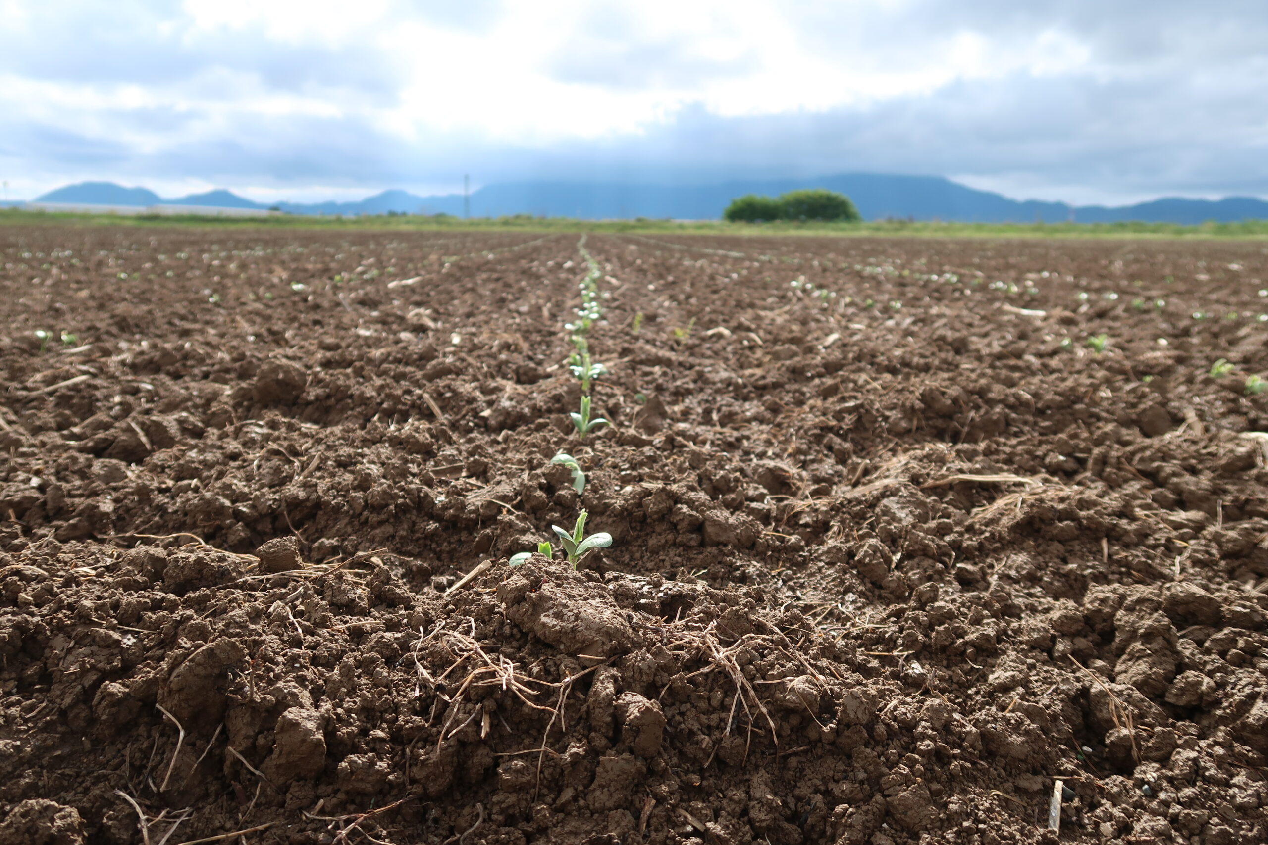 そして大豆の畑を見に行くとぽつぽつとかわいい目が出ていました。